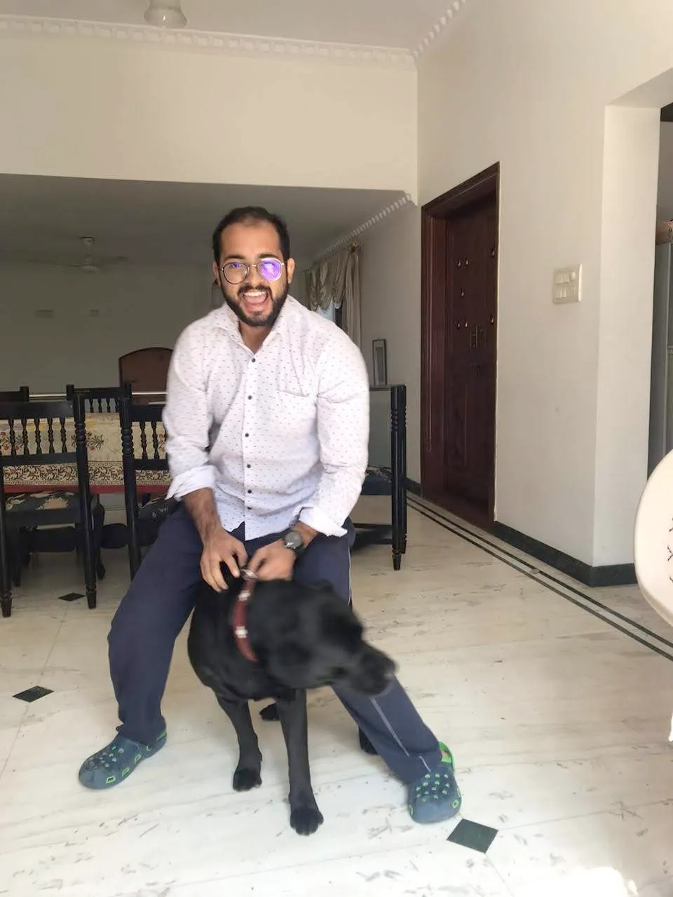 And here is December, 2019, close to new year. I had also started gaining muscle. The dog looked stressed though: